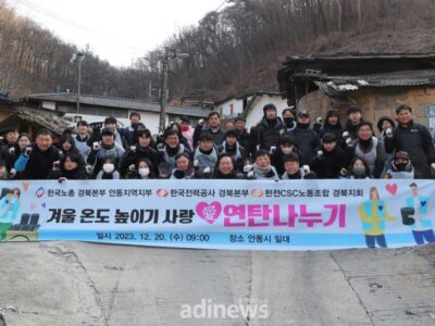한국노총 경북본부 안동지부 소속 조합원들이 지난 20일 사랑愛 연탄봉사 활동으로 한겨울 어려운 이웃들에게 온기를 전했다. 이날 연탄 나눔 행사에는 전국전력노동조합…